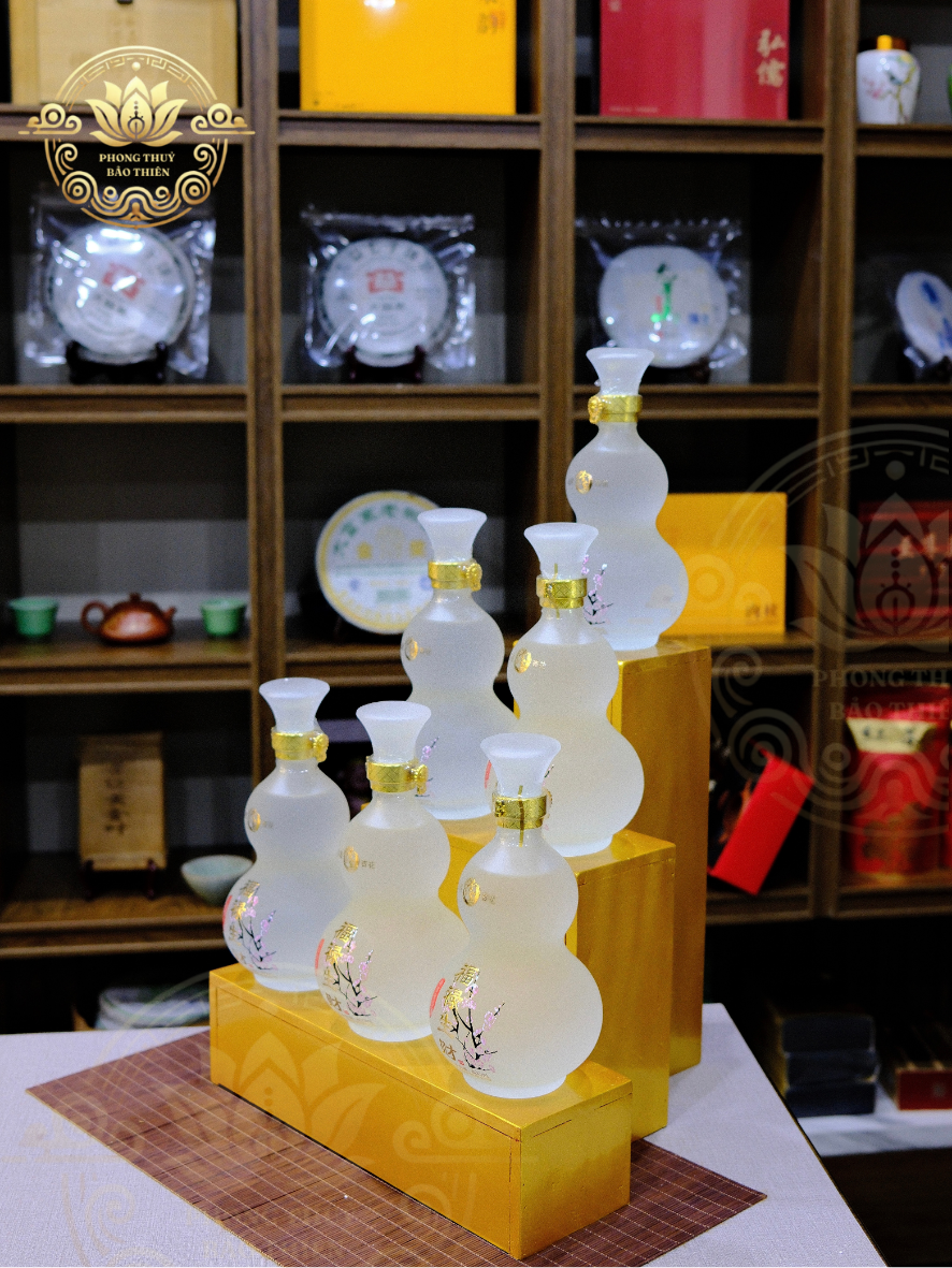 Tạo sự trang trọng và linh thiêng khi đặt rượu trên bàn thờ gia tiên, bàn thờ Thần Tài – Ông Địa, hay trong không gian lễ cúng tại đền phủ.