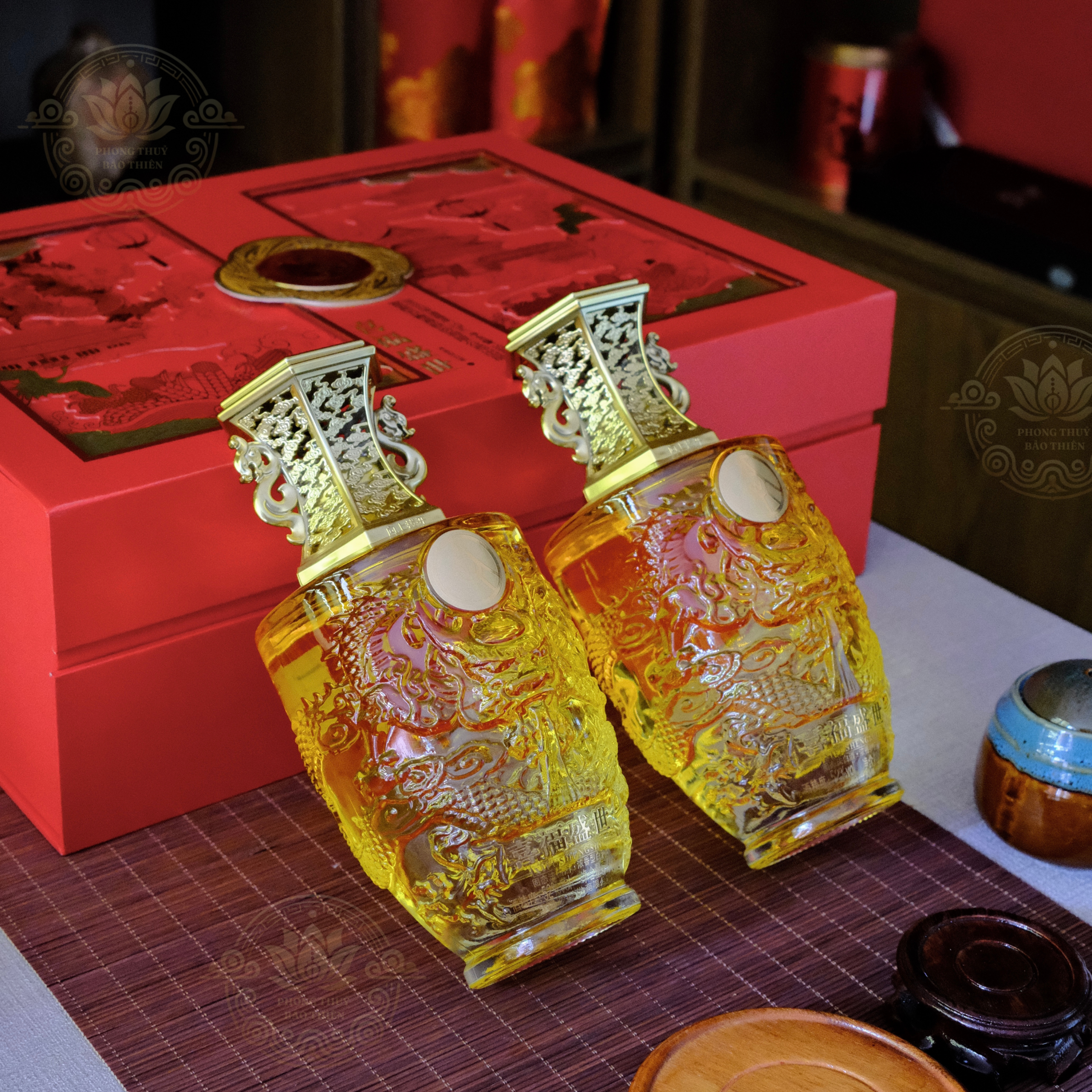 A: Có, tặng vật phẩm phong thủy khi mua combo từ 10 chai trở lên với giá ưu đãi.